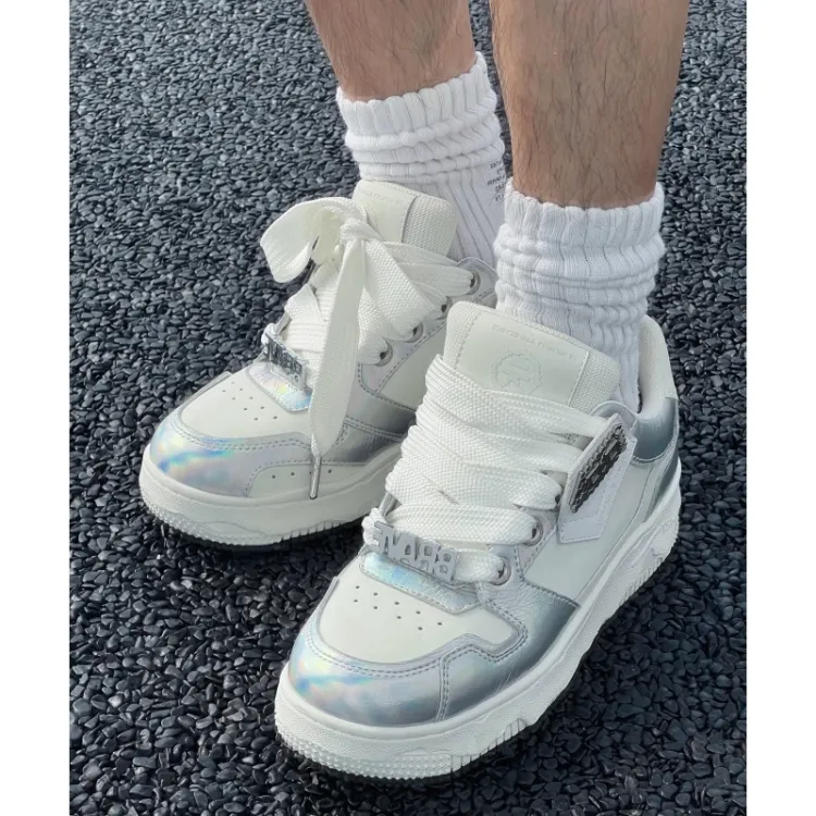 YJ YUAN 2.0 레이저 컬렉션 내마모성 로우탑 스케이트보드 신발 남녀공용 화이트