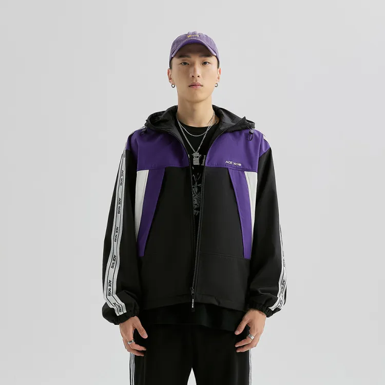 YK&YB 블랙 퍼플 남녀공용 바람막이 재킷