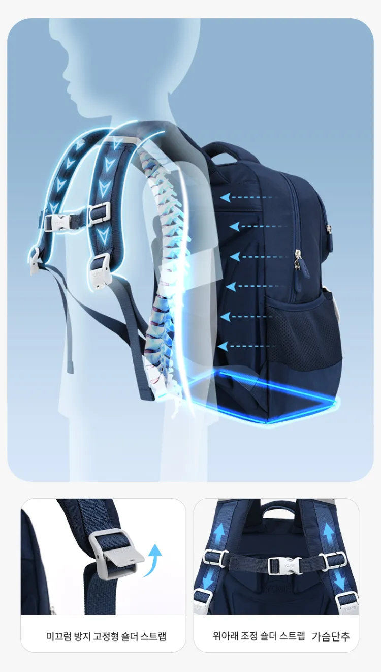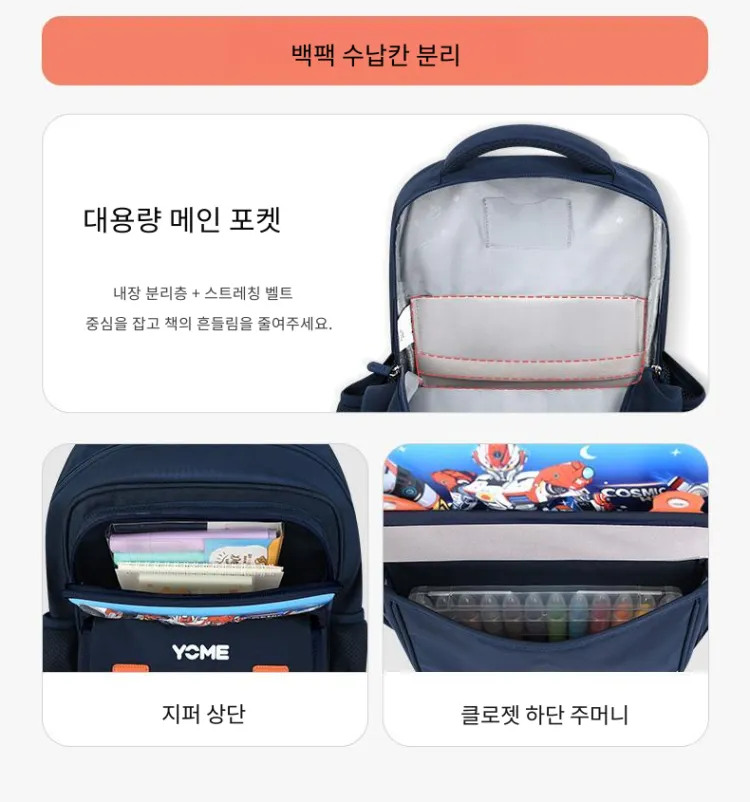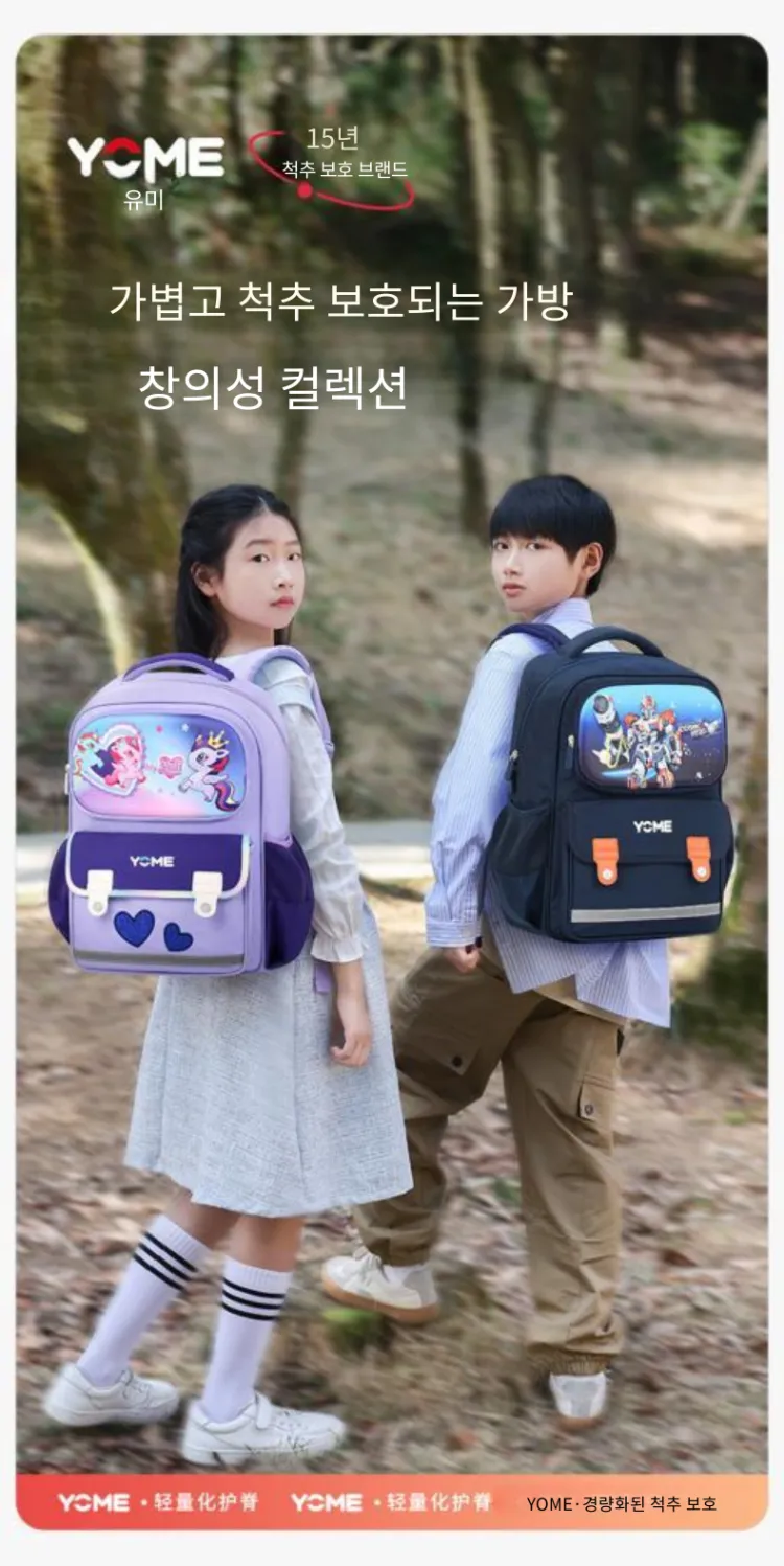 YOME 폴리에스테르 척추 보호 및 추천 체중 감소 학생용 백팩 레귤러 아동 배색