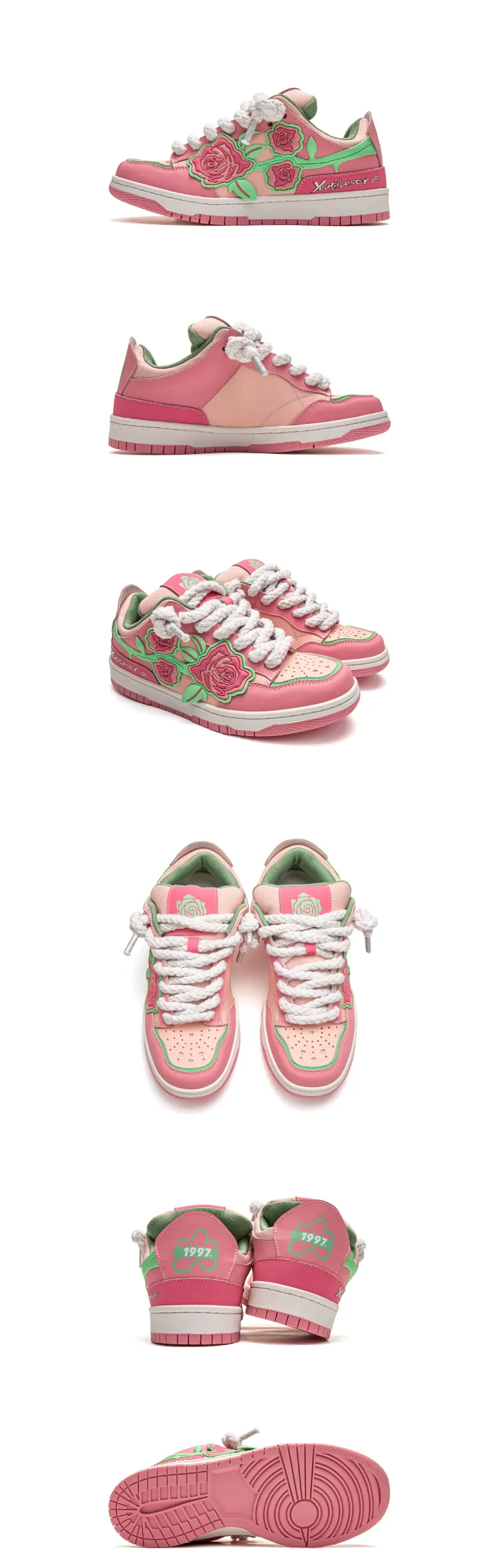 Youthloser 로우탑 스케이트보드 신발 남녀공용 핑크 - POIZON