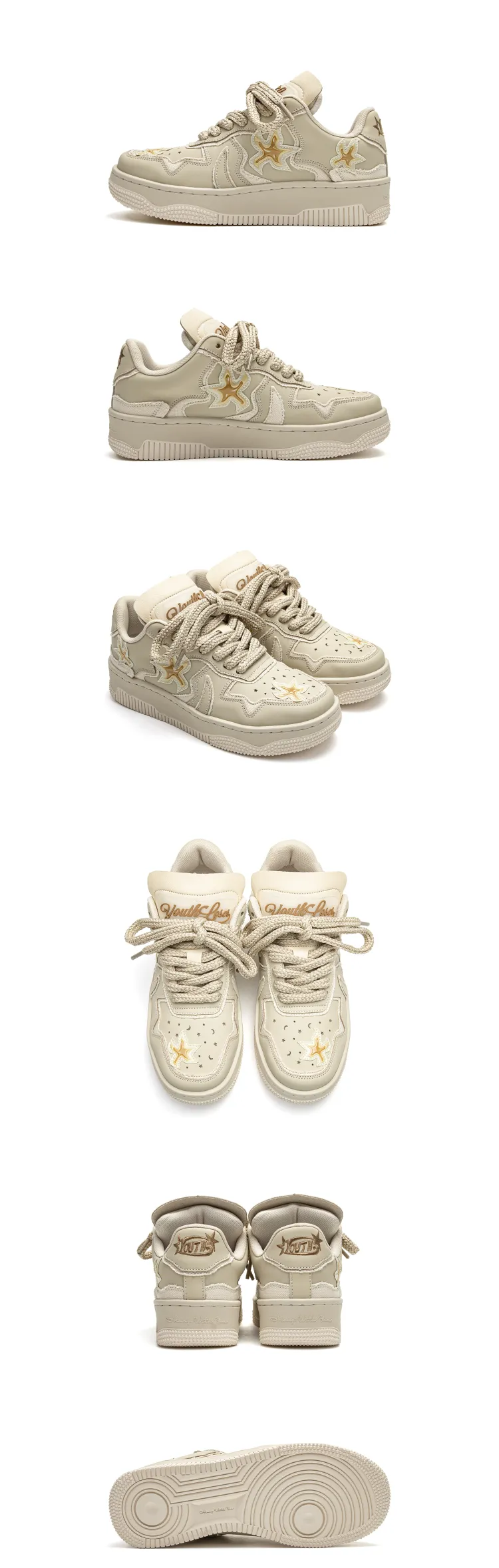 Youthloser 러닝 별 컬렉션 로우탑 스케이트보드 신발 남녀공용 베이지