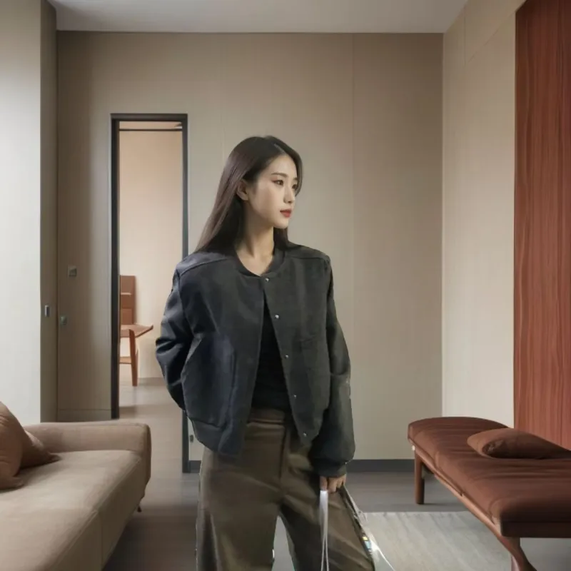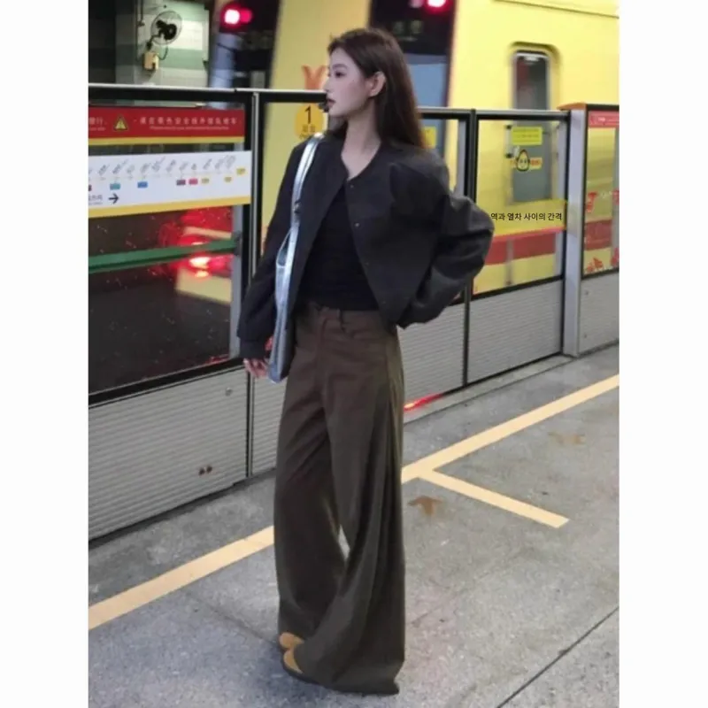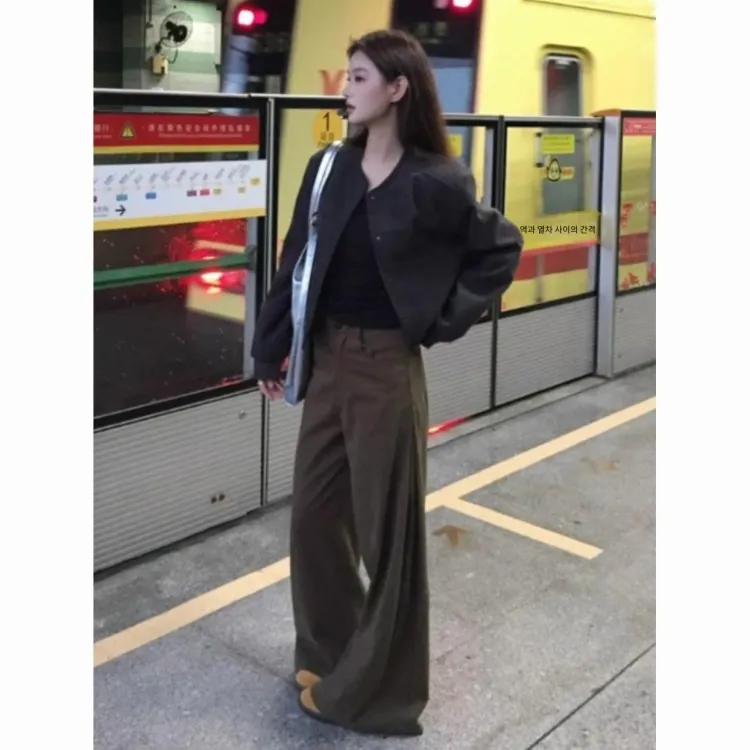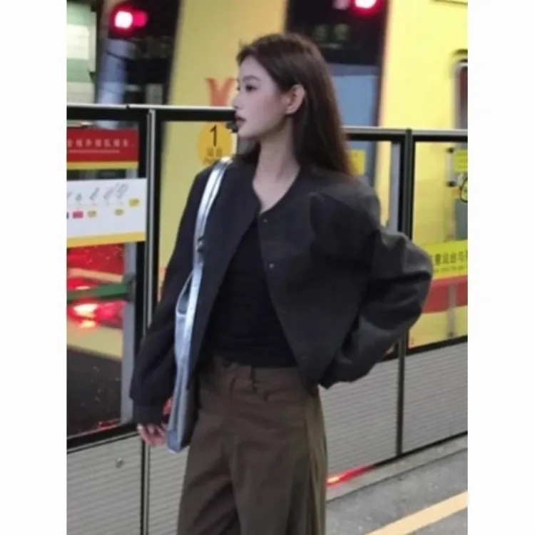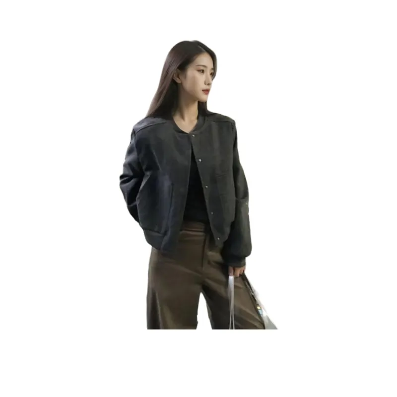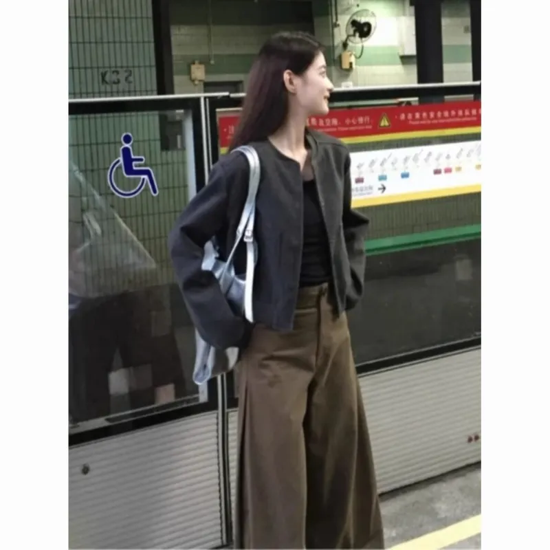 YUZHAOLIN 다크그레이 여성 크롭 코트
