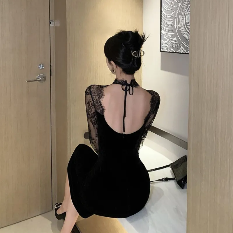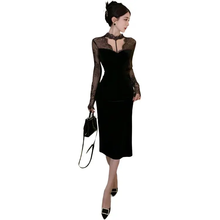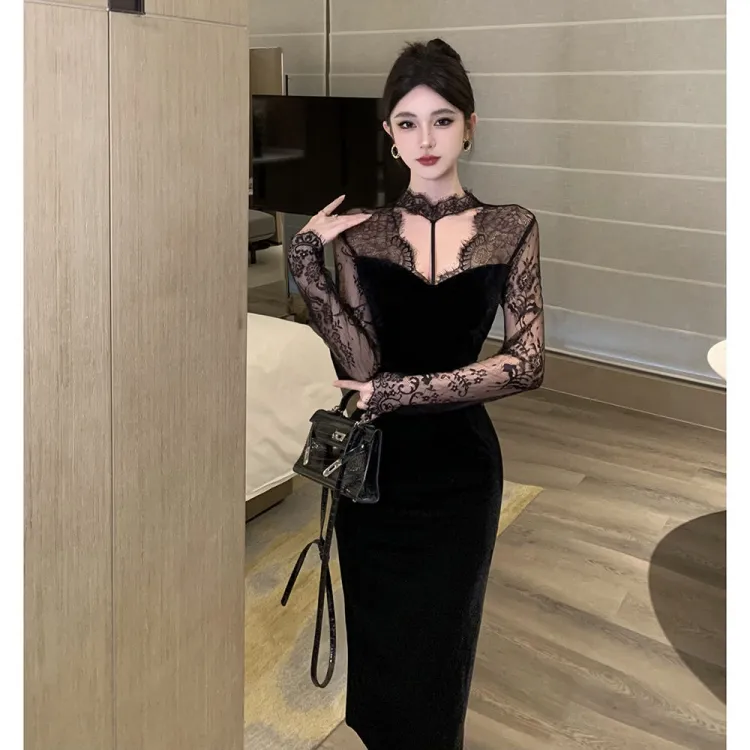YUZHAOLIN 블랙 여성 긴팔 원피스 - POIZON