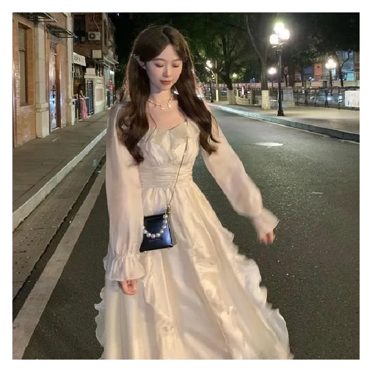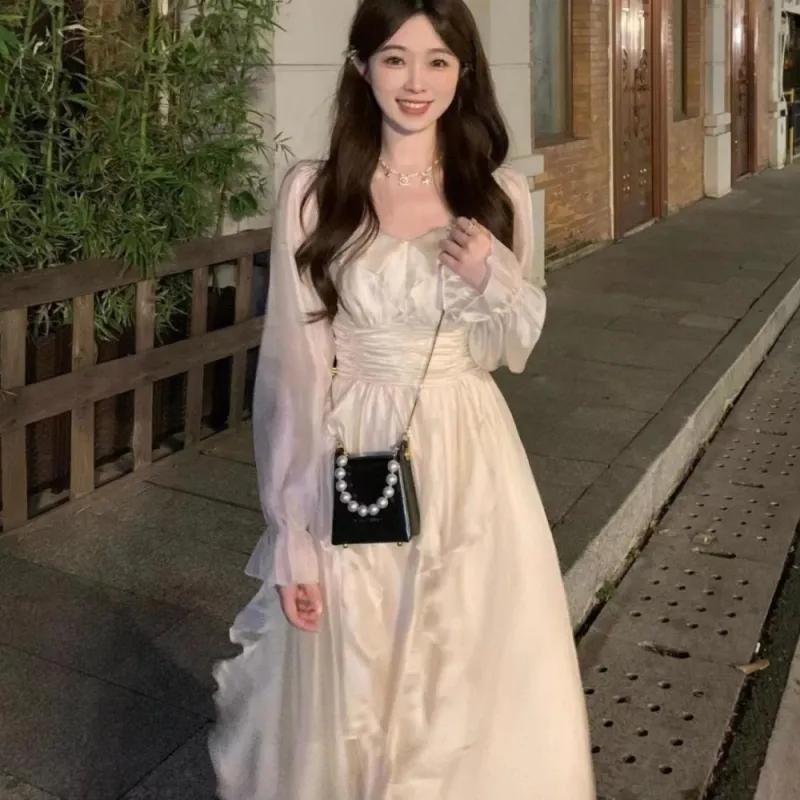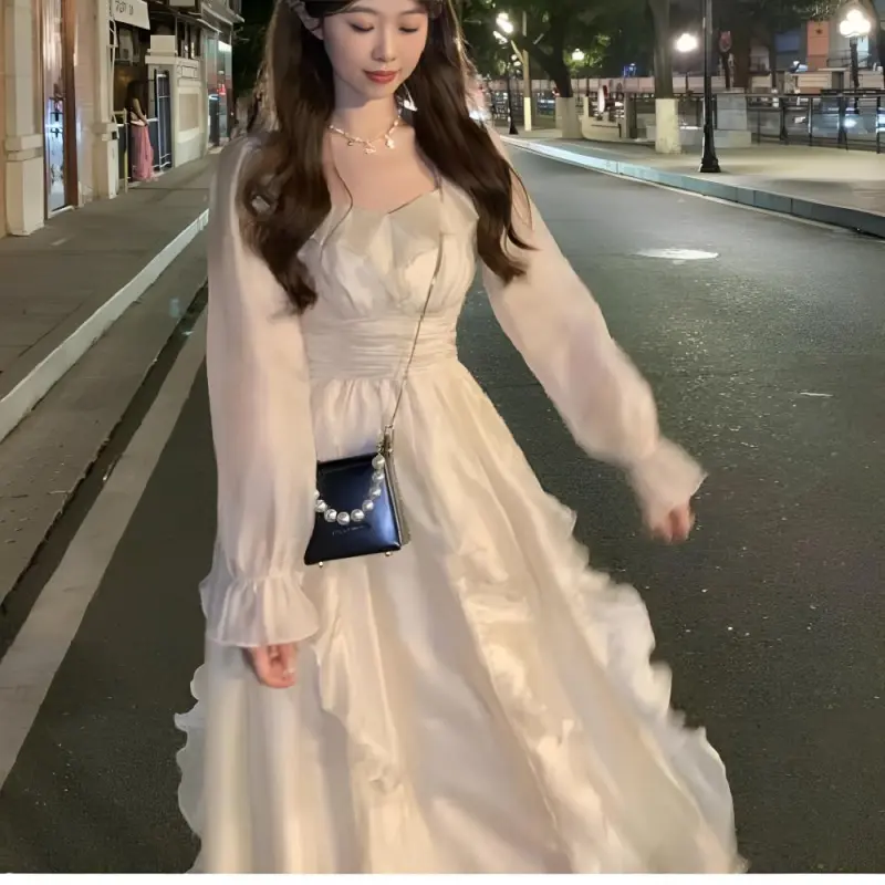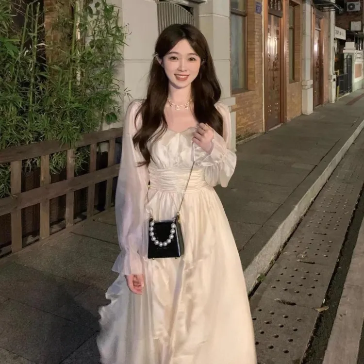 YUZHAOLIN 애프리콧 여성 긴팔 원피스 - POIZON