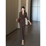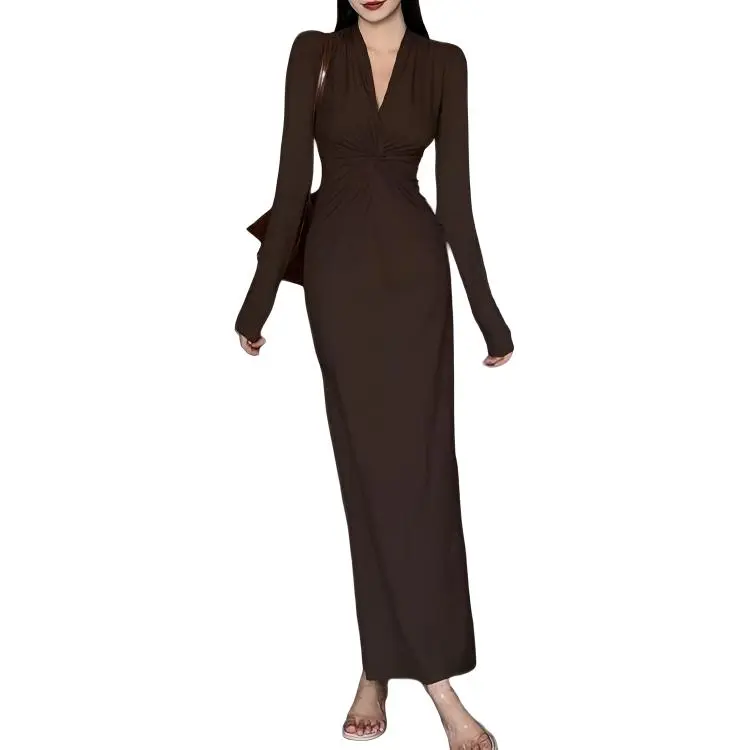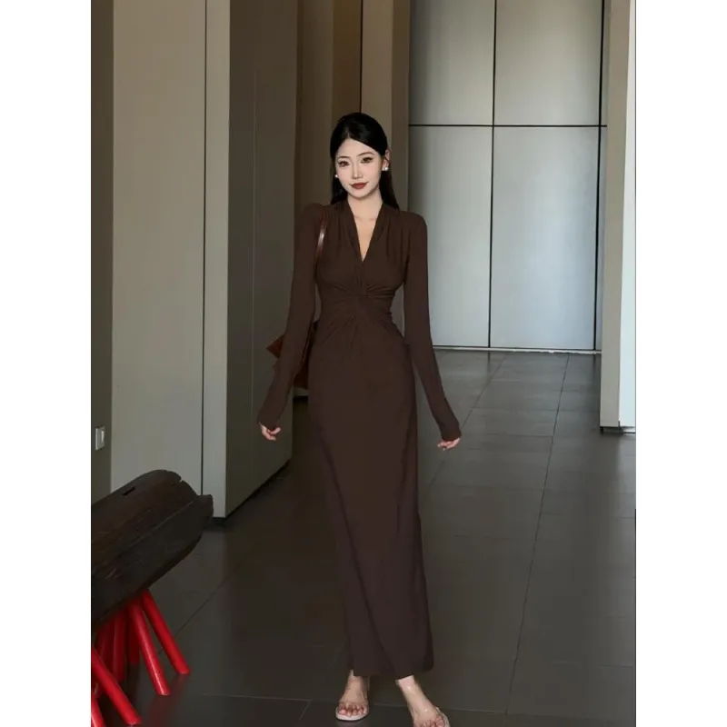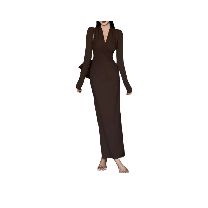 YUZHAOLIN 커피 여성 긴팔 원피스