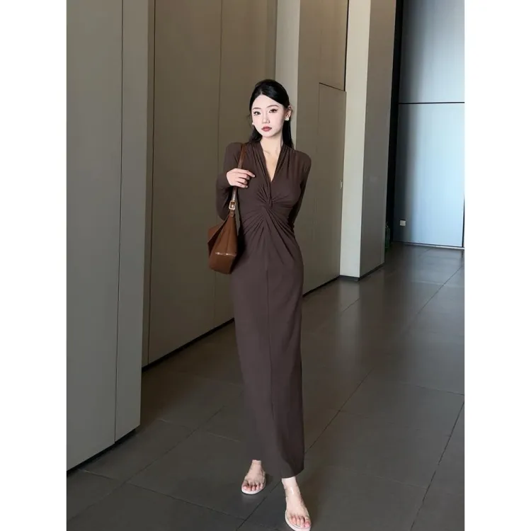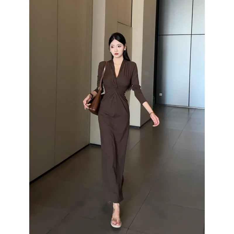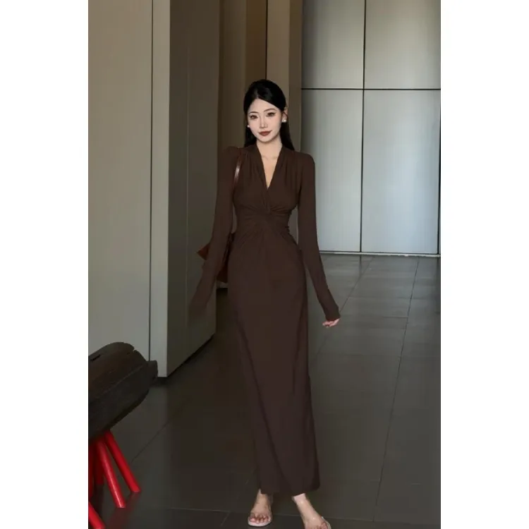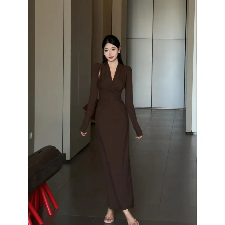 YUZHAOLIN 커피 여성 긴팔 원피스 - POIZON