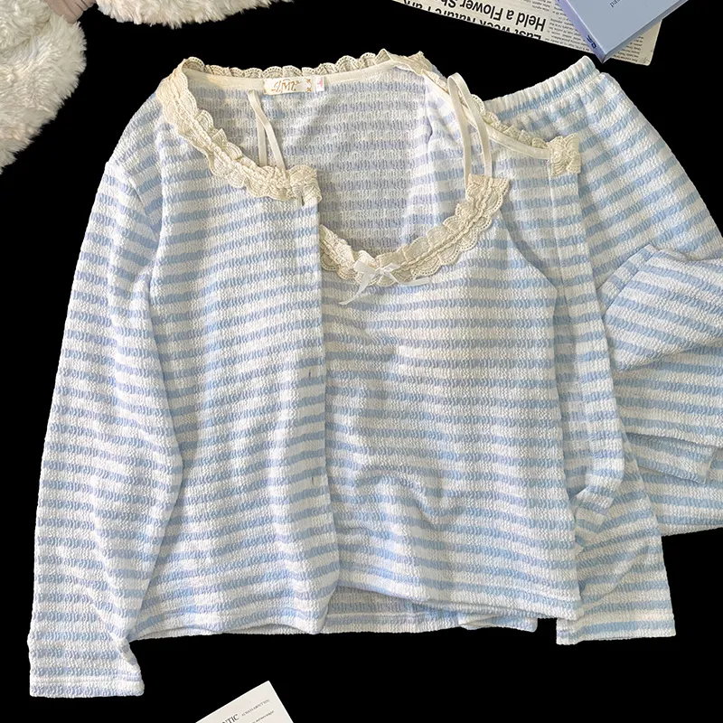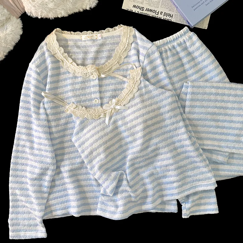 YUZHAOLIN 블루 여성 파자마 세트