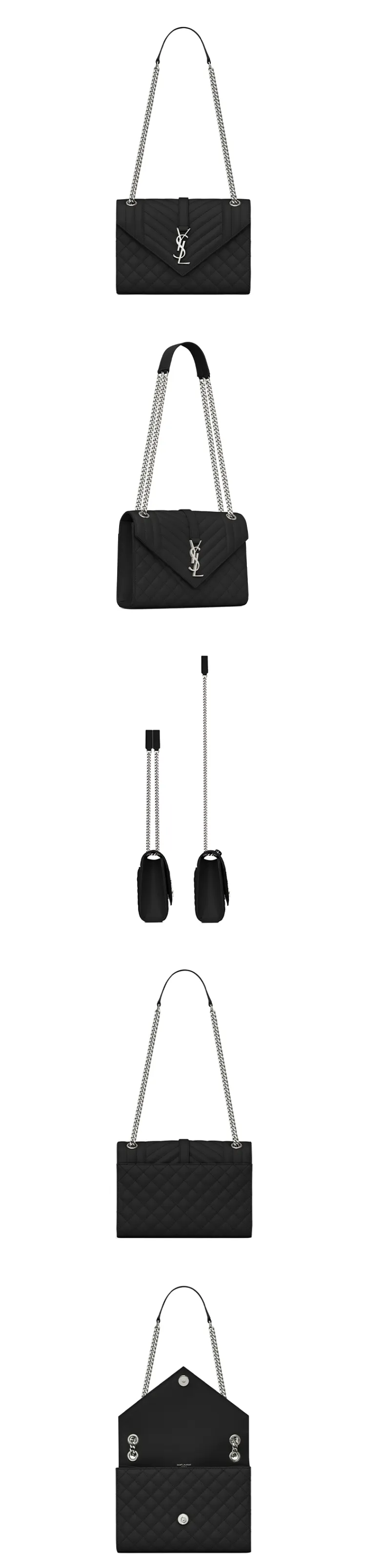 생로랑 곡물 송아지 가죽 엔벨롭 백, 크로스백, 숄더 백 여성 블랙