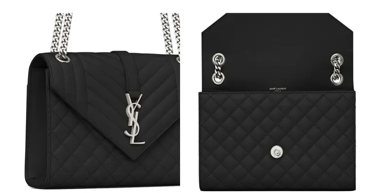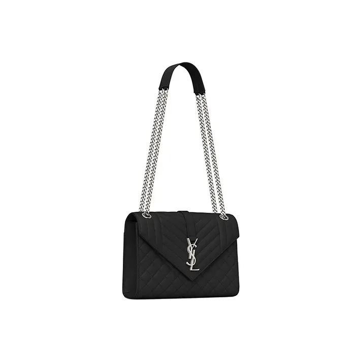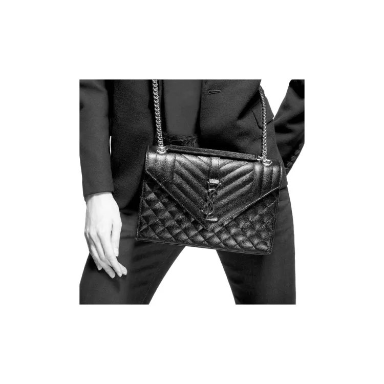 생로랑 곡물 송아지 가죽 엔벨롭 백, 크로스백, 숄더 백 여성 블랙 - POIZON