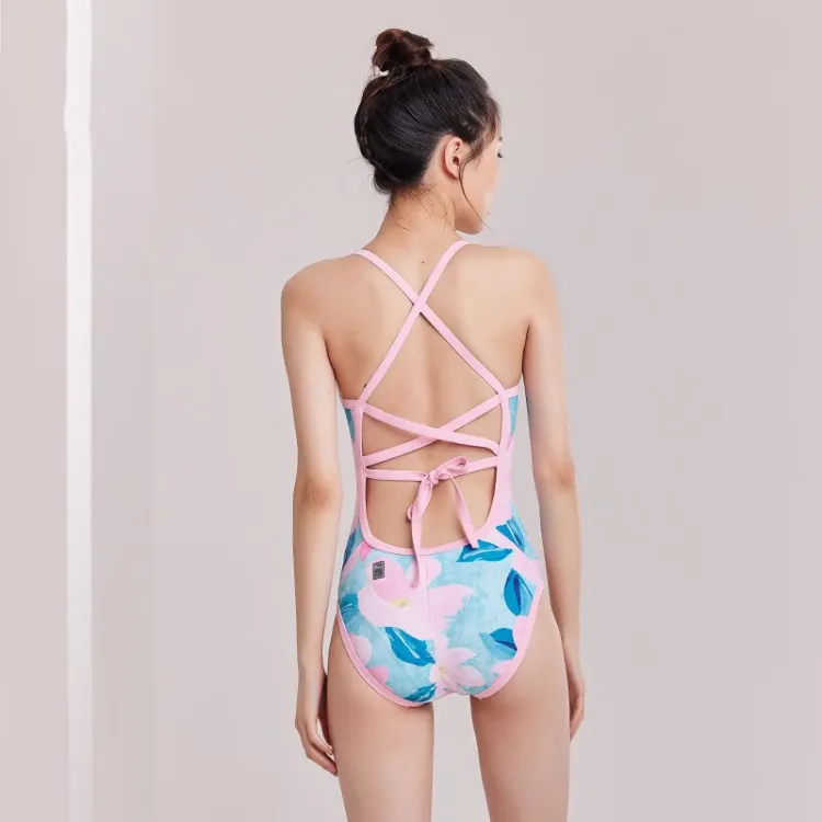 ZOKE 핑크 그린 꽃무늬 여성 원피스 수영복