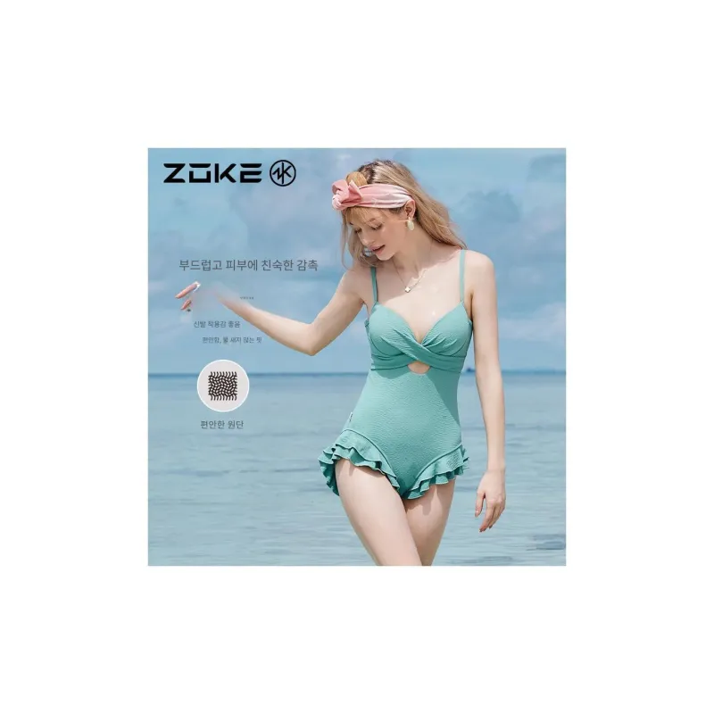 ZOKE 원피스 수영복 여성 핑크 그린 화이트 체크무늬 패턴 - POIZON