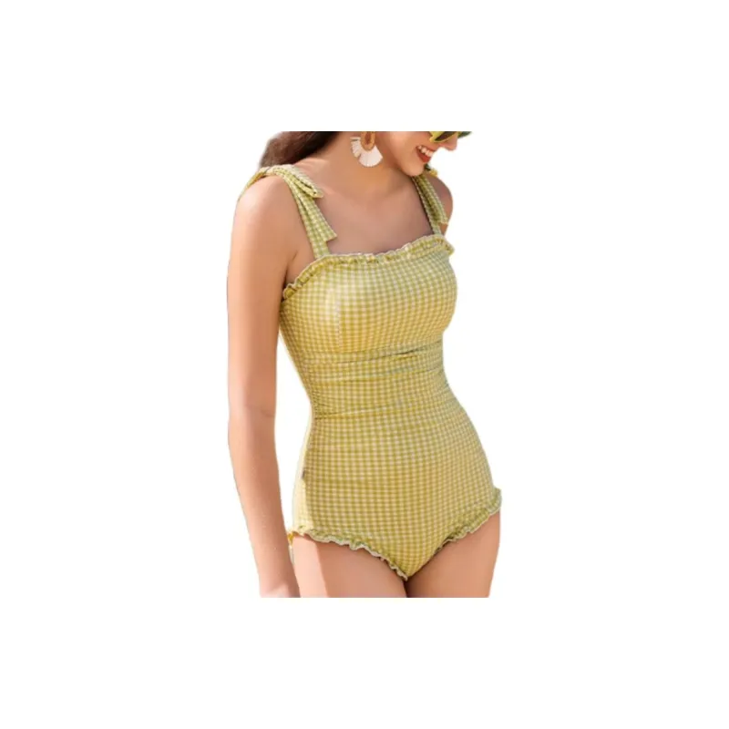 ZOKE 원피스 수영복 여성 핑크 그린 화이트 체크무늬 패턴